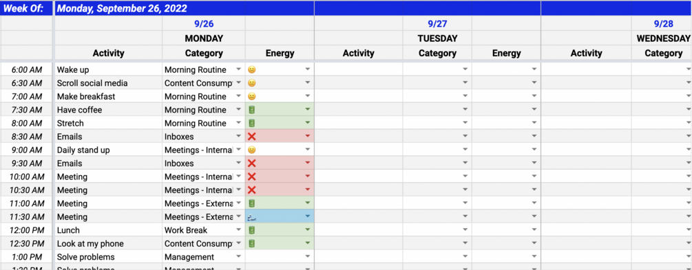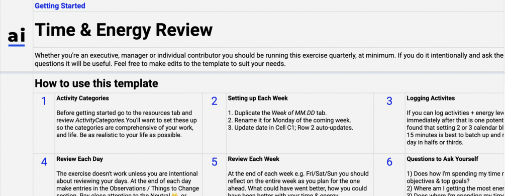 Time & Energy Review (Google Sheets)